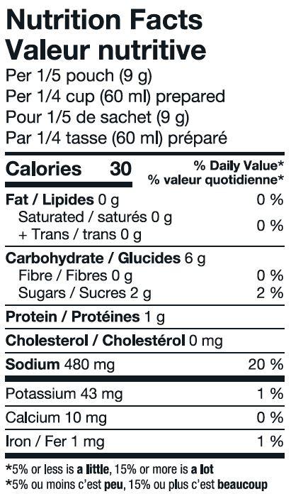 Sugars (corn syrup solids, sugar, maltodextrin), Modified corn starch, Hydrolyzed vegetable proteins (soy, corn), Wheat flour (wheat, gluten), Dehydrated red wine (sulfites) (maltodextrin, solids Burgundy wine), Salt, Modified milk ingredients (milk), Monosodium glutamate, Dehydrated vegetables (tomato, onion, beet, garlic), Palm oil, Corn starch, Dehydrated white wine (sulfites) (maltodextrin, wine solids of Sauterne), Spices and fine herbs, Disodium inosinate, Disodium guanylate, Xanthan gum, Citric acid, Natural flavor, Caramel color (sulfites).
