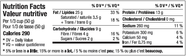 Peanuts, soybean or canola oil, salt, sugar (maltodextrin, sugar), modified cornstarch, onion powder, spices, flavour, garlic powder, vinegar, mustard, citric acid, sodium diacetate, monosodium glutamate, tomato powder, colour, yeast extract, and malic acid.